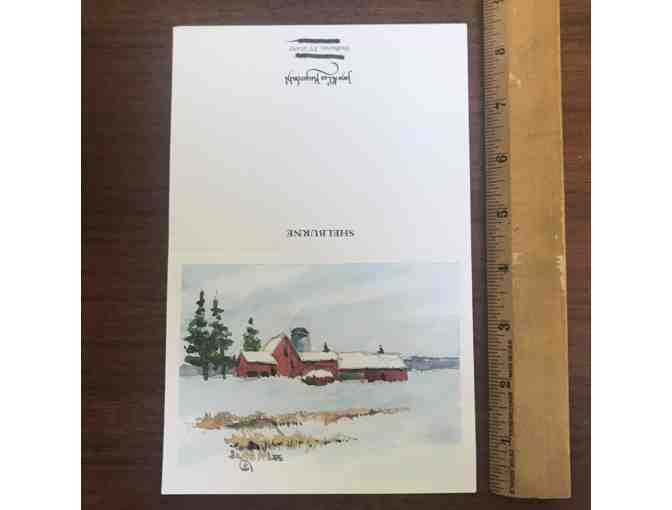 Package of 15 cards of a scene in Shelburne, Vermont. Envelopes included. Cards were crafted and donated by Jane A'Lee Heyerdahl