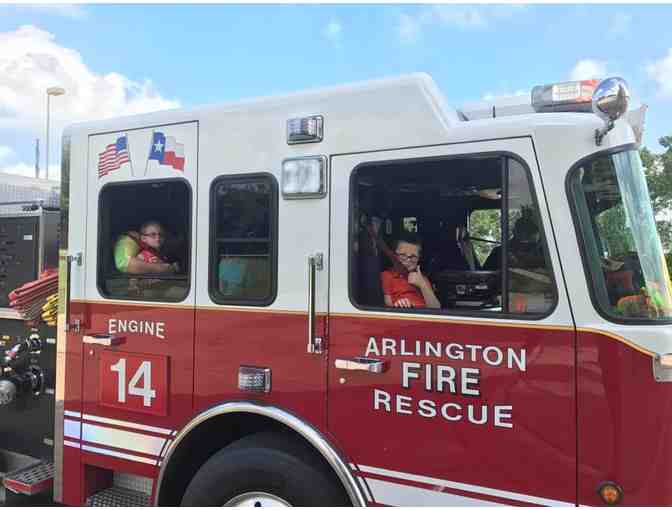 Don't miss the chance to train with the Arlington Fire Department's finest at the Arlington Fire Department Training Center located at 5501 Ron McAndrew Dr, Arlington, TX 76013. A special training session will be designed for you and up to 3 friends which will include a tour of the training center, training demonstrations, and a firefighter-style obstacle course. You will experience dragging a fire hose, spraying water, and other age-appropriate activities. The winning bidder will receive an email with instructions on how to contact Lieutenant Evans with the Arlington Fire Department to arrange a date and time.