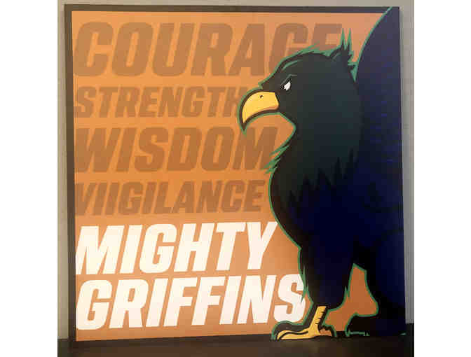 Elevate your space—or someone else's—with this remarkable custom Griffin art piece! Measuring 24" x 24" and printed on high-quality foam-backed poster board, this vibrant artwork is sure to brighten any office, classroom, or living space. Whether you're a proud Griffin fan or simply appreciate bold, captivating art, this piece is a must-have. It also makes a thoughtful and unique gift for teachers, students, or alumni.