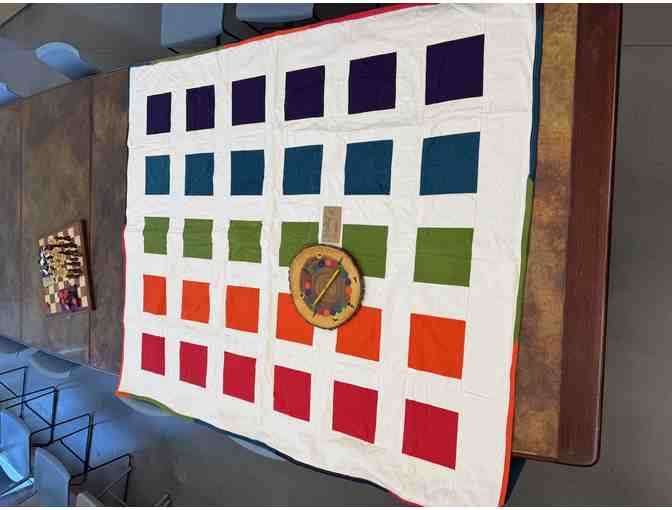 Family game night. Originally created by Mrs. Beckers 1st game 2019 class parents. Hand made twister quilt. 65x75. With Waldorf inspired spinner
