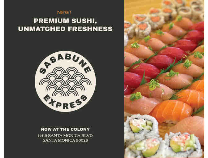 PREMIUM SUSHI, UNMATCHED FRESHNESS Sasabune Express is bringing top-quality sushi at an incredible value. Enjoy the freshest fish, expertly crafted for takeoutperfect for a quick lunch or an elevated dinner at home. NOW AT THE COLONY 11419 SANTA MONICA BLVD SANTA MONICA 90025