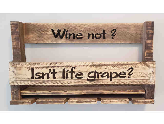 This wall-mounted wine rack gives all your favorite vintages a place to shine. It showcases a distressed wood finish for a country farmhouse feel in your dining room or kitchen. This piece also can hold glasses or accent pieces and bar essentials.