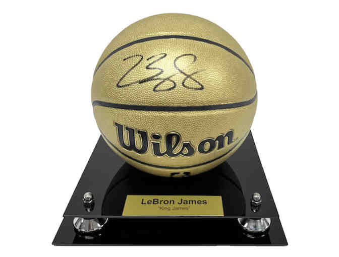 Authentic Wilson NBA Gold Edition Commemorative Basketball - This item comes in a display case with an elegant black-on-gold engraved nameplate. Signed by: LeBron James