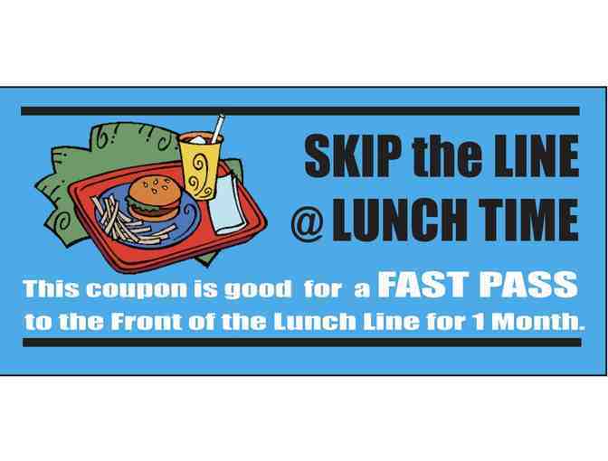 Winning bidder will receive a pass to use to 'cut the line' to to the front of the hot lunch line for the entire month!