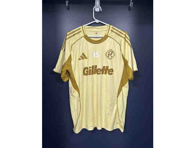 You are bidding on a "One Planet, One Chance" pre-match top worn by Revolution defender Brandon Bye during the Revs Greener Goals match on Saturday, April 19, 2025 against New York City FC.