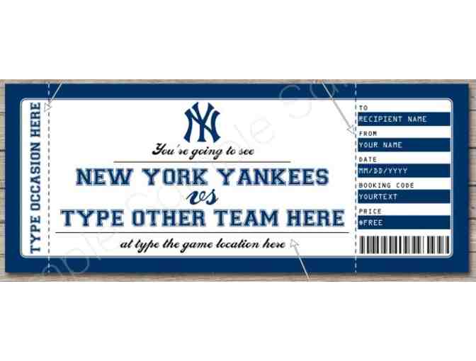 Experience the thrill of Yankees baseball with four (4) tickets to a 2025 non-premium regular season home game at Yankee Stadium, generously donated by the New York Yankees. Seating is located in Field Level or Main Level seating areas (subject to availability). These tickets offer seating in the Field Level or Main