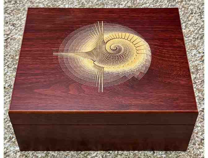 Enjoy this unique handmade humidor by Jim Lapastora of Laser Foto Worx. The humidor has a Spanish cedar interior with an adjustable center divider. Humidifier and Hygrometer included.