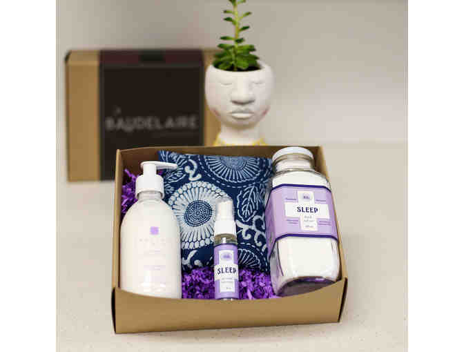 The "Sweet Dreams" Gift box, curated by Beaudelaire, a NH-based artisan bath and body company, awaits you at the end of a long day.