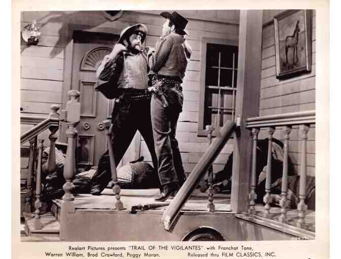 Trail of the Vigilantes, the 1940 Allan Dwan western comedy starring Franchot, Broderick Crawford, Andy Devine, Warren William, Mischa Auer, Porter Hall, Peggy Moran and Paul Fix.