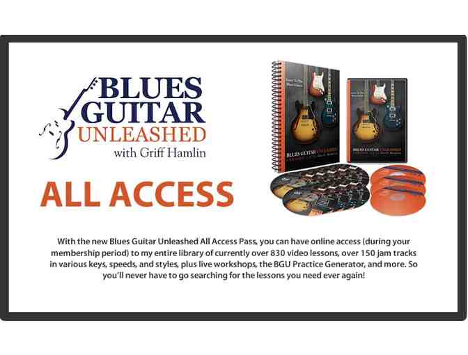 This is a ONE YEAR MEMBERSHIP to the Blues Guitar Unleashed ALL ACCESS PASS program. You'll have one full year of full access to the Blues Guitar Unleashed Member Portal, including streaming access to currently over 850 video lessons, hundreds of blues jam tracks, and complete manuals in PDF format. You will also have access to the online Practice Generator & Tracker, as well as membership and access to the Blues Guitar Unleashed Member Forum, and several live, online sessions per month.