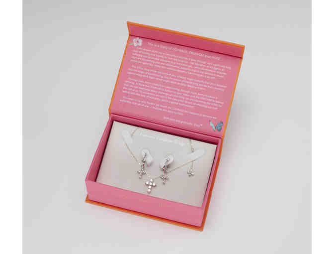 inch chain, with adjustable length. Fun earrings you can wear 3 ways! A timeless set for someone special. Outstanding packaging for gifting or keepsakes! Created exclusively for the nonprofit community. Our jewelry goes through a special process, starting with high polish, followed by a coating of palladium, then platinum and finished off with a layer of rhodium or yellow gold. Jewels With A Purpose is known for: timeless classic designs, luxurious look and feel and everlasting quality.