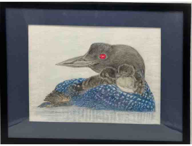 Colored Pencil Image of Loon with Chicks