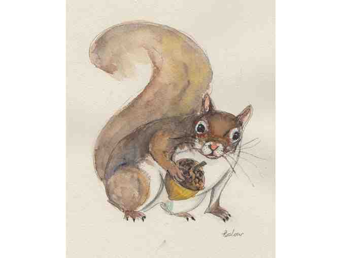 Watercolor Painting of Squirrel with Acorn by Esther Koslow