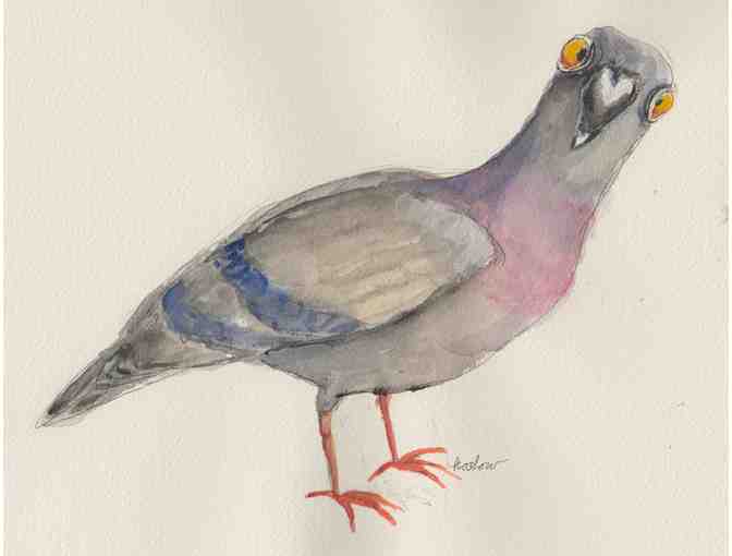Watercolor Painting of Googly-eyed Pigeon by Esther Koslow