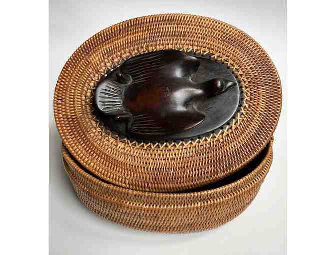 Woven Basket with Bird Carving Handle on Lid - Indonesian