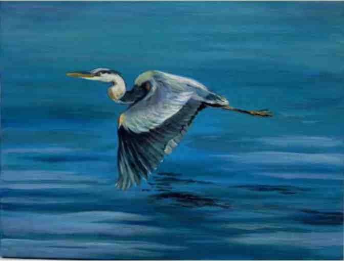 Acrylic Painting of Great Blue Heron in Flight