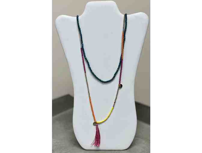Add a vibrant pop of color to any outfit with this stunning layered necklace from Premier Designs. Featuring a beautiful mix of multicolored beads in various shapes and textures, this statement piece is perfect for dressing up your favorite basics or adding flair to your evening wear.