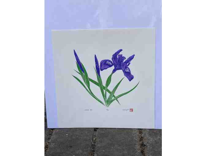 Bring the elegance of the California coast into your home with Coastal Iris, a vibrant botanical print by acclaimed artist Rik Olson. This hand-pulled limited edition features a striking depiction of the native iris in rich purples and lush greens, celebrating the beauty and simplicity of nature.