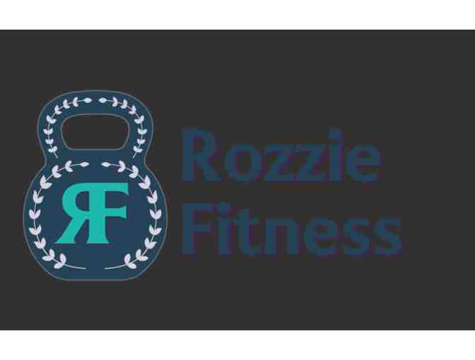 Rozzie Fitness swag bag featuring Rozzie Fitness merch, shirt, and water bottle!
