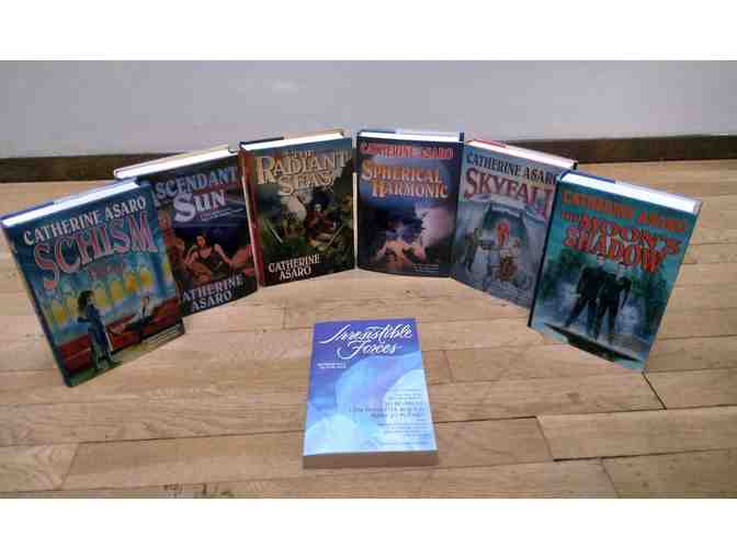 This is a bundle of Catherine Asaro's books, in first edition hardcovers! Titles include ASCENDANT SUN, IRRESISTIBLE FORCES, SPHERICAL HARMONIC, and more.