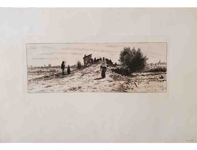 Etching by Otto H. Bacher, 1856-1909, American. Titled Auf Staufa-Bruck, "Sept 5_79 OTTO" (1879). Title, date and maker’s first name in lower right corner within ink outline of image within plate.