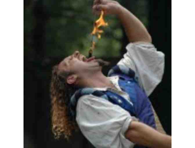 Entertainment, exciting rides, and challenging games abound on the Faire’s enchanting 80-acre wooded site. Be enthralled by our minstrels, acrobats, fire eaters, aerialists, and larger-than-life-size puppets. Hundreds of talented performers entertain our patrons simultaneously on eight vibrant stages and in the lanes. The King’s daring knights battle on horseback thrice daily in jousting tournaments and bawdy beggars compete in mud.