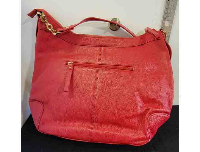 Ora Delphine Handbag Top Handle Red Leather Zip Close 14x13x5 - Used