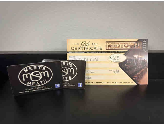 Two $25 Gift Cards to Mert’s Specialty Meats – Pick up top-quality meats, house-made sausages, fresh deli items, and gourmet groceries from this trusted local butcher and market.