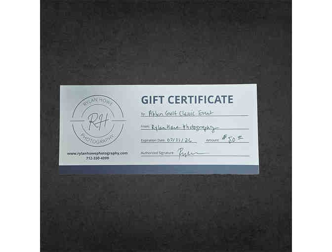 Enjoy a $50 gift certificate to Rylan Howe Photography — perfect for portraits, family sessions, or special occasions!