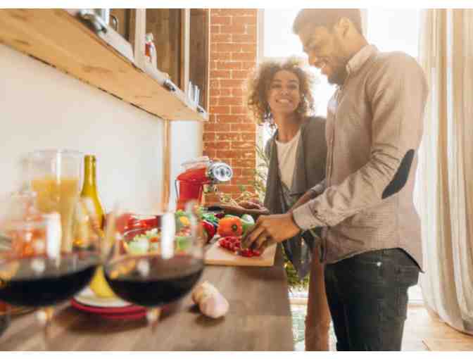 Whether you're cooking side by side, sipping wine, or trying out a new recipe, this package has everything you need for a wonderful date night in!