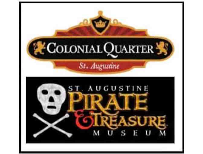 Two VIP cards each valid for one admission at the St. Augustine Pirate and Treasure Museum in St. Augustine, Florida and Two St. Augustine Colonial Experience Living History Tour admissions in the Colonial Quarters of St. Augustine.