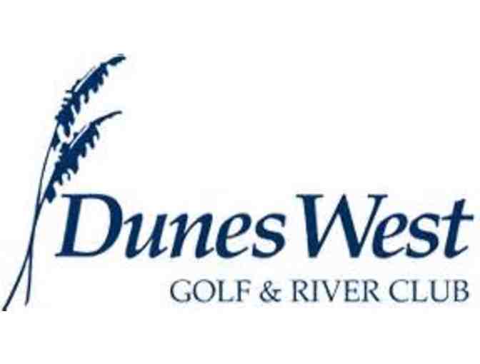 Four certificates, each for one round of golf at Dunes West Golf and River Club in Mt. Pleasant, South Carolina.