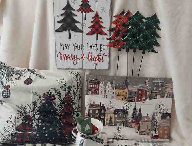 You won't need anything else to get your home ready for the Yuletide! Decorative mat 80cm x 120 cm, 4 garden stakes, sign, 4-12"x18"placemats, 2-17"x17" pillow covers, 6ft table runner, paper plates, napkins and pot holders, decorative milk can, 4 ornaments, 2 dishtowels, baking mat and utensil set and 16"x12" picture.