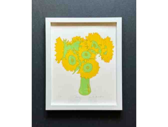 Brighten your home with this vibrant two-color fine sérigraphie print by San Francisco artist Anne Breedlove. Measuring 8” x 10” and beautifully framed, this piece captures the bold energy and warmth of sunflowers in a strikingly modern style.