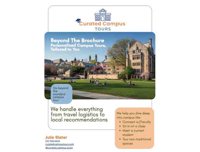 Curated Campus Tours crafts personalized college tours which encompass more than just the campus experience. They handle all the essentials—flights, driving routes, hotels, restaurant recommendations, and things to do.