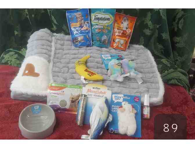 Your cat will love this toy and treat assortment from PS+. 3 bags of crunchy treats, 4 furry toys, 1 Yeowww banana and so much catnip! They can later crash on this soft bolster pet bed 16"x23".