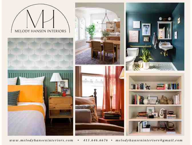 Winning bidder will receive a 2-hour interior design consultation with Melody Hansen Interiors in your home or office.