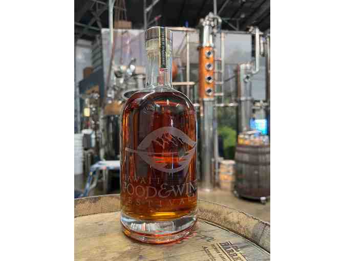 Up for auction is a one-of-a-kind bottle of Old Pali Road Private Reserve Bourbon, custom-engraved with the HFWF Festival logo.