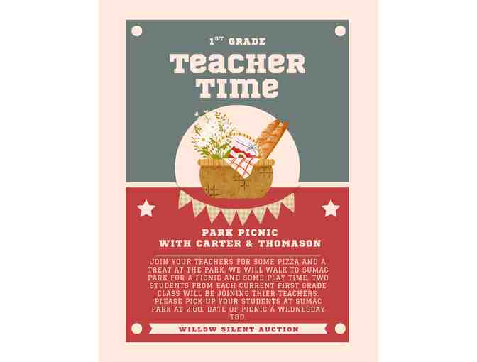 Join your teachers for some pizza and a treat at the park. We will walk to Sumac Park for a picnic and some play time. Two students from each current first grade class will be joining thier teachers. Please pick up your students at Sumac park at 2:00. Date of picnic a Wednesday TBD.