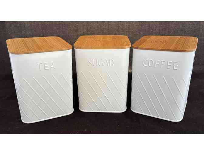 This is a set of 3 metal canisters: Coffee, Tea, Sugar