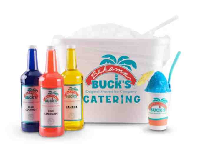 A certificate for a party pack from Bahama Buck's in Phoenix, Arizona. The party packs are DIY-style catering that serves 25 small shaved ices. The certificate comes with a cooler with enough ice to serve the 25, 3 flavors of your choice, and any utensils you may need (ex: cups, spoons, gloves, etc.).